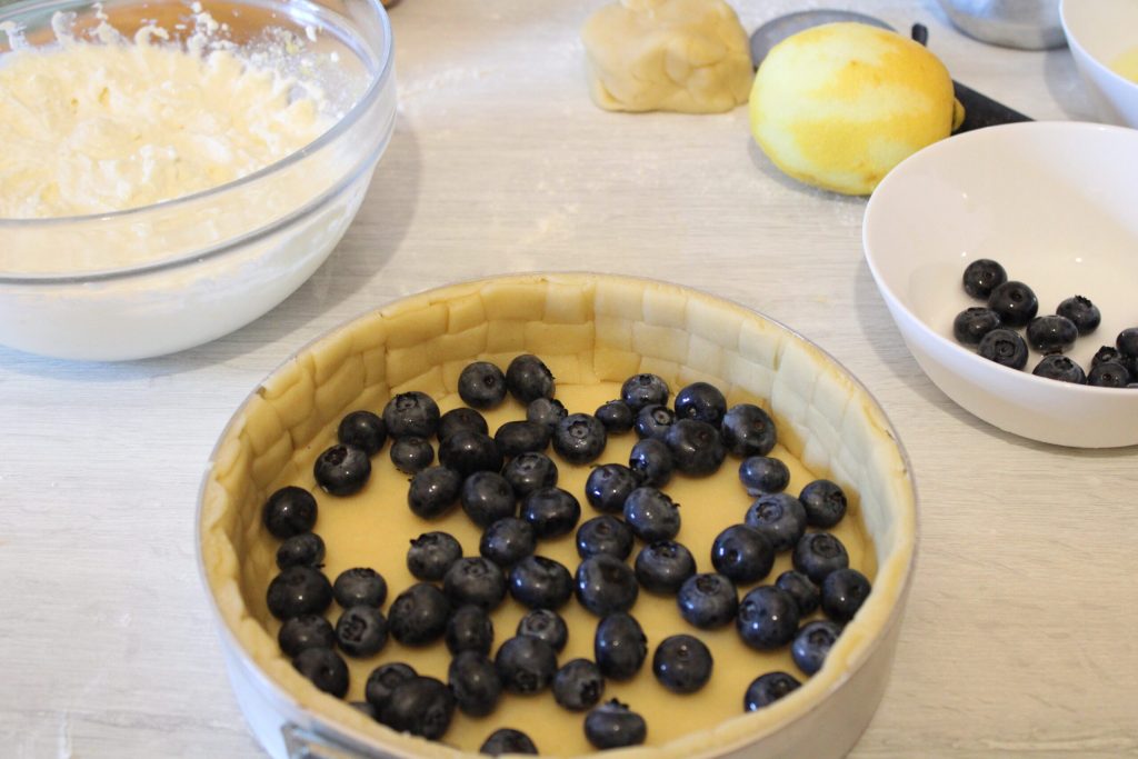 Venons-en au fait: une pâte sablée très friable, avec un remplissage de myrtilles et de ricotta au citron de la Côte des Cèdres.