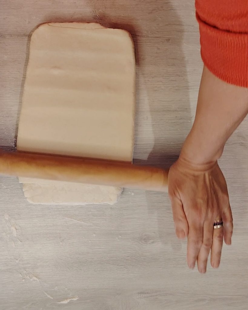 Récupérez la pâte, étalez-la et faites un tour double. Vous devrez répéter cette opération deux fois.