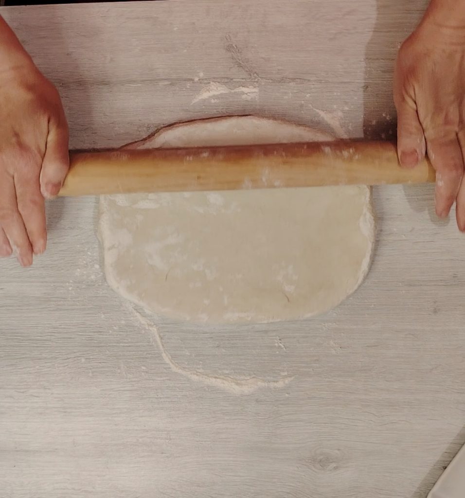 Une fois le temps écoulé, étalez la pâte jusqu’à une épaisseur d’environ un cm, mettez-la de côté…