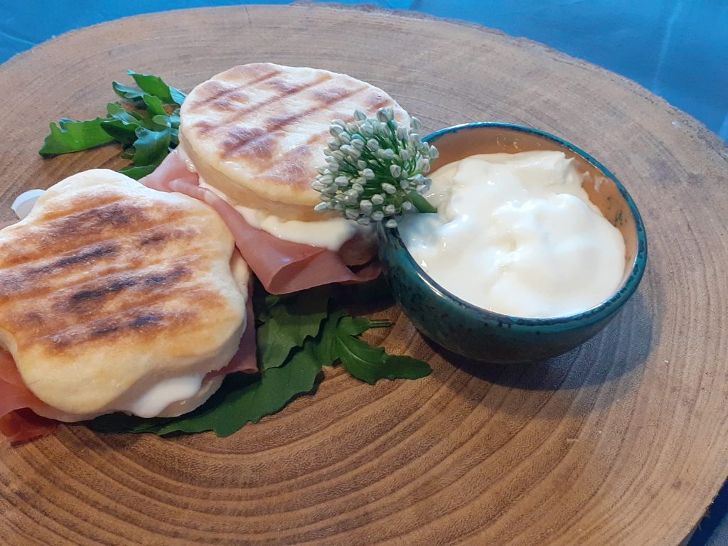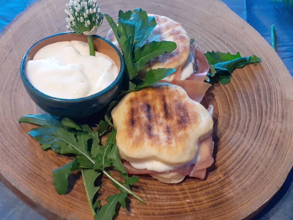Crescentine avec squacquerone et jambon cru. Un classique.