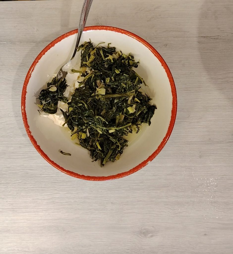 Mais revenons à notre feuilleté. Les herbes que je récolte doivent aussi être consommées, alors en plus des plats traditionnels, de temps en temps je fais quelques expériences. Le feuilleté est l’une d’elles. Souvent, ils rencontrent du succès, parfois je dois encore travailler dessus. Les feuilletés sont simples à préparer et savoureux, idéaux comme entrée, comme déjeuner à emporter, car ils contiennent tous les éléments pour un repas nutritif. Glucides, graisses, peu, protéines et vitamines. Pratique et savoureux. Avec la pâte folle, c’est spécial!