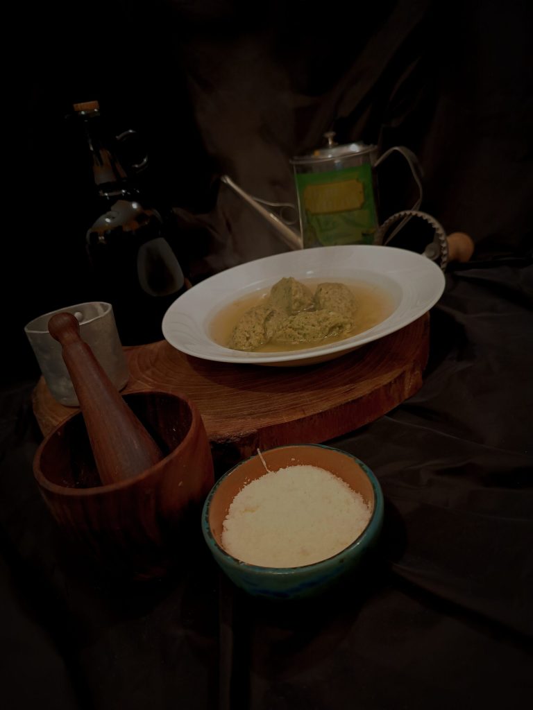 Et ainsi, moi aussi, de temps en temps, je prépare des gnocchetti de pain, assaisonnés avec de bons œufs et des légumes frais, pour ensuite les faire cuire dans un bon bouillon bouillant et les servir à table pour le plaisir de déguster un plat à savourer lentement