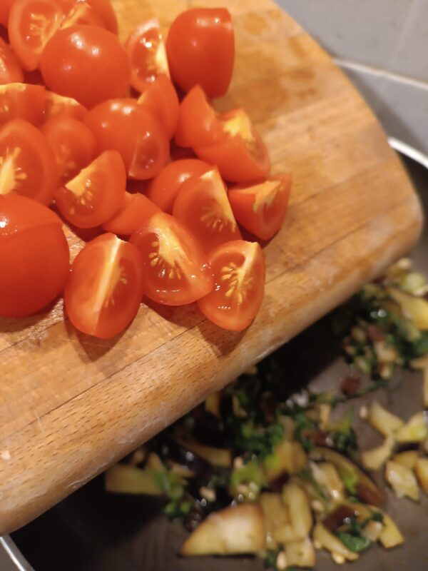 • Une fois prêts, égouttez et transférez dans la poêle avec les légumes et faites imprégner.