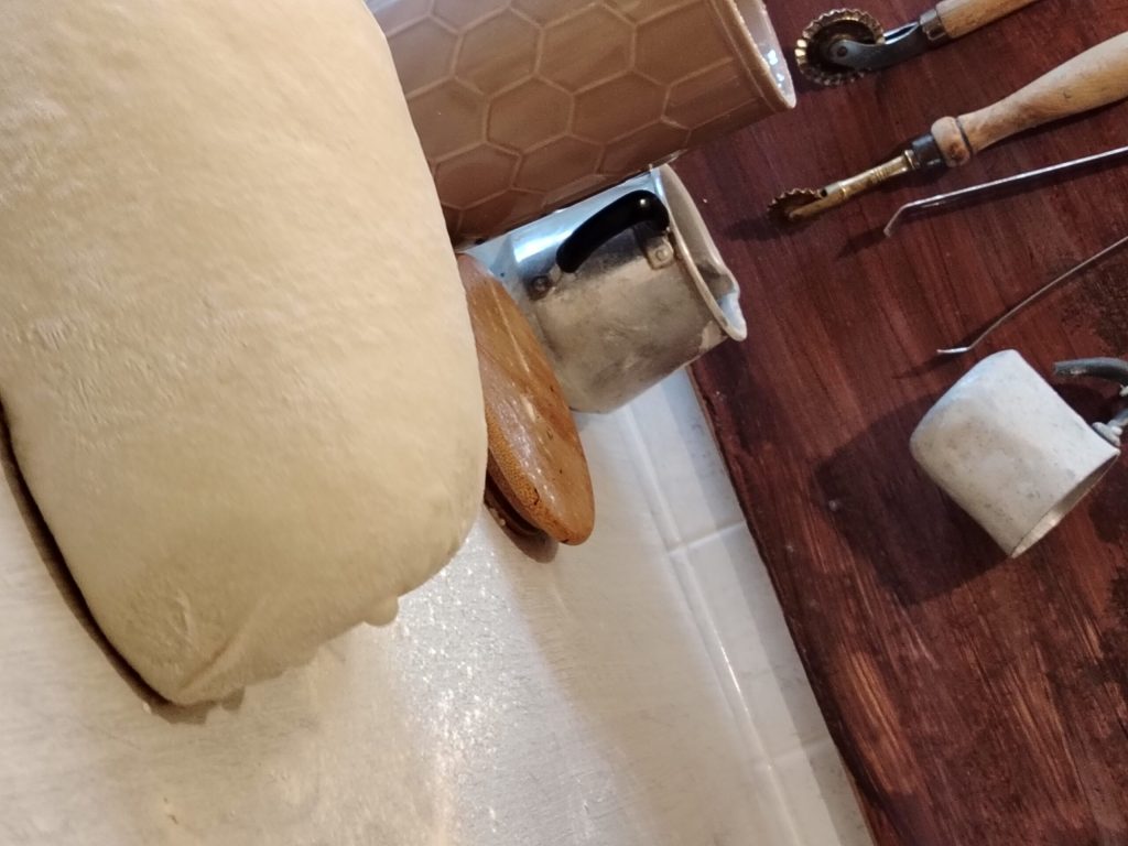 Un grand saladier, un plan de travail pour le pétrissage. Plaque de cuisson. Tout le matériel que j’utilise se trouve dans mes conseils d’achat.