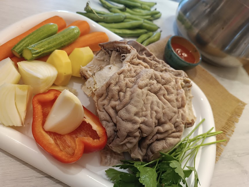 Après avoir nettoyé soigneusement le caillette, il est cuit dans un bouillon de légumes jusqu’à ce qu’il devienne tendre… Servi ensuite avec une sauce verte ou épicée