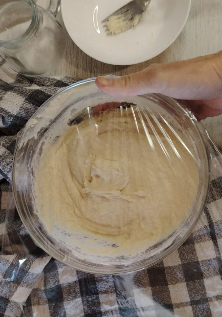 • Mélangez bien et couvrez de film plastique et laissez lever jusqu’à ce que des milliers de bulles apparaissent à la surface.