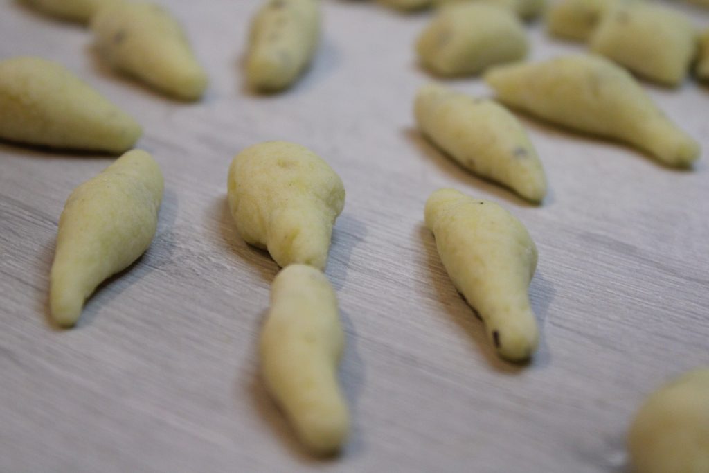 Formez des boudins de 1,5 cm que vous couperez ensuite en morceaux d’environ deux cm