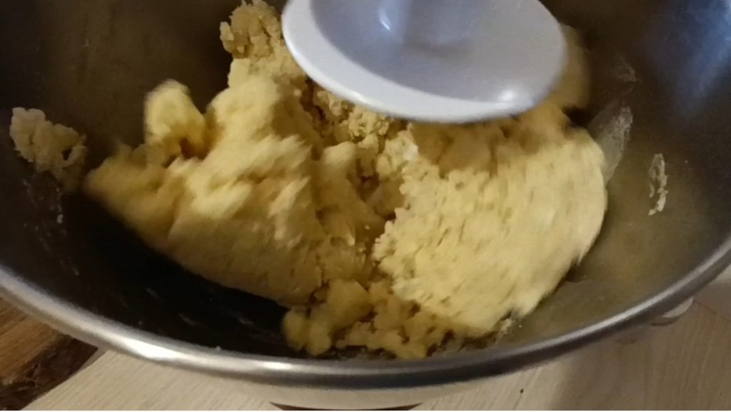 Après avoir monté les œufs, ajoutez-les aux amaretti avec 60 grammes de farine, mélangez bien, avec délicatesse