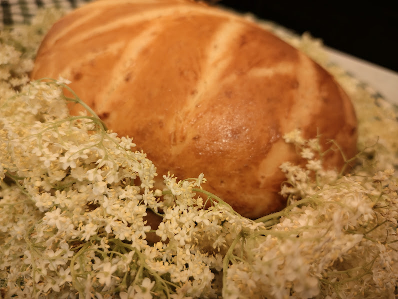 Pain au sureau. Une recette datant de longtemps, presque autant que mes années, sûrement plus. Il y a eu un temps où nous avons déménagé à la campagne; en famille, le potager n’a jamais manqué, mais après nous être installés au nord, le contact direct avec la nature nous manquait beaucoup, mon père travaillait en usine, ressentait le besoin de trouver quelque satisfaction en plus. Ainsi, nous avons fait un autre déménagement. La maison à la campagne, les vaches, le poêle à bois… Son rêve. Bien qu’il n’ait pas quitté son travail, cette nouvelle installation le remplissait de satisfaction.
