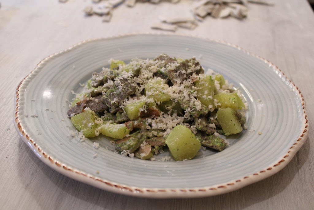 • Égouttez dès qu’elles sont prêtes et ajoutez-les au speck, ajoutez le pesto et mélangez soigneusement.