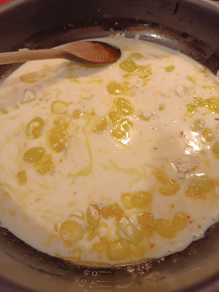 • Enfin, ajoutez le grana et le lait, faites légèrement épaissir jusqu’à obtenir une consistance fluide, si besoin ajoutez une goutte de lait.