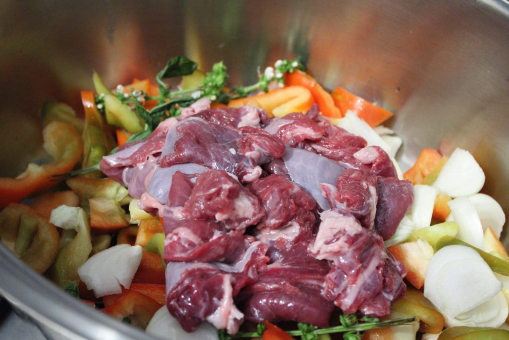 • 1 kg viande ovine (Chèvre pour être précis, cela pourrait être cuisse ou épaule, mais même des morceaux moins nobles conviennent.)