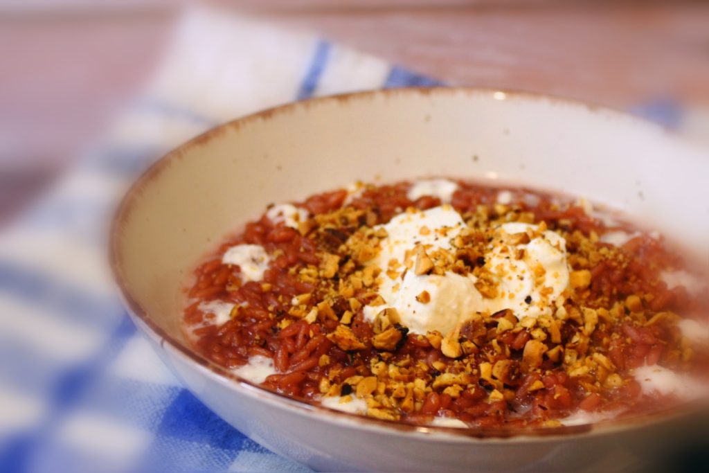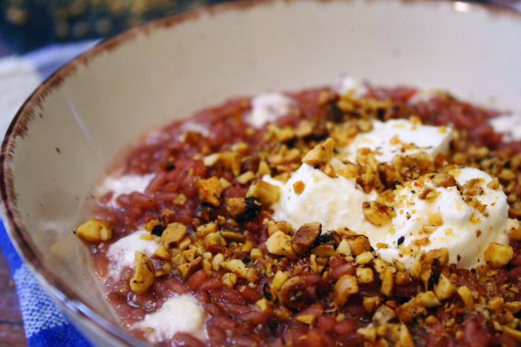 Riz, vin barbera et noisettes grillées. Avec trois ingrédients, une explosion de saveurs!