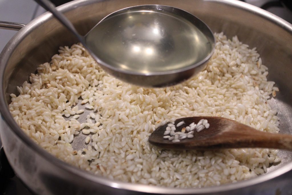 • Et ajouter le bouillon au fur et à mesure que le liquide est requis. Faire attention à la cuisson et mélanger souvent.