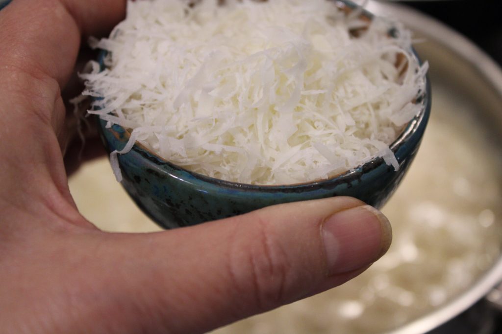 Je ne veux pas trop m’étendre, alors je passe à la recette. Dans l’intérieur du Latium, où le pecorino prend la place du Parmesan et du Grana Padano, les plats sont assaisonnés avec des fromages de brebis affinés. Même dans le nord, on élève des brebis pour en obtenir du bon lait pour le fromage, mais la fabrication se fait avec d’autres procédés.