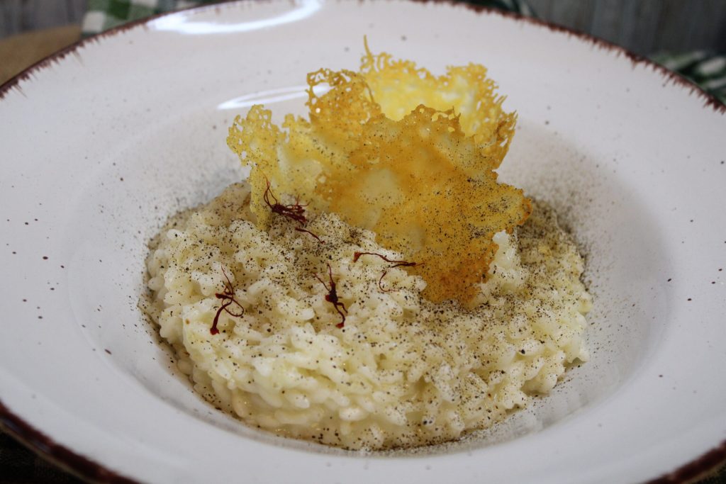 Risotto cacio e pepe. Vous aurez remarqué que j’aime particulièrement la cuisine rustique et traditionnelle de notre Italie, et je continue de rechercher des plats peu connus ; de temps en temps, il y a aussi quelques plats créés par moi, mais… Depuis quelques mois, je suis à la recherche de ces plats pauvres que beaucoup ont abandonnés, convaincus qu’ils ne sont plus à la mode. Moi, par contre, je travaille précisément pour obtenir une reconnaissance des origines de notre cuisine, celle qui nous a transmis des valeurs et des traditions, une histoire pour donner suite à un changement que l’on trouve surtout dans les villes, mais qui reste à bon niveau dans les petits villages, hors du chaos.