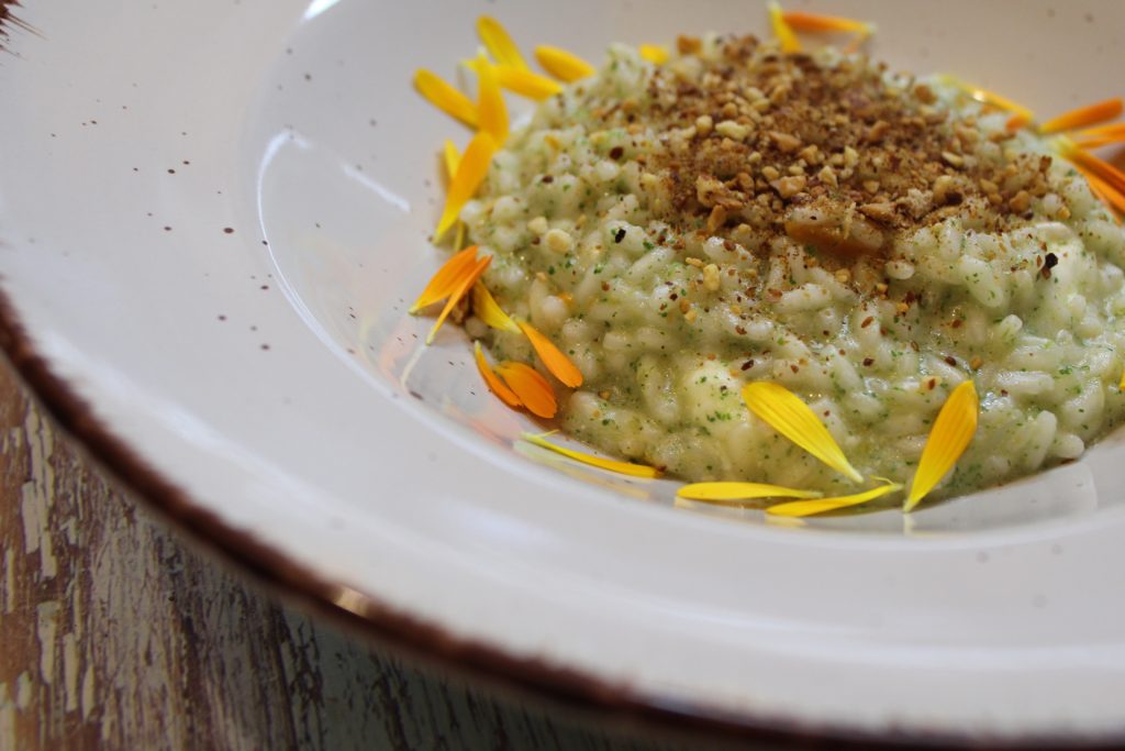 Recette du risotto Collines de Langa. Un goût de souvenirs parfumés. Certaines recettes naissent non seulement de la rencontre d’ingrédients, mais aussi du murmure des souvenirs, de parfums qui s’insinuent dans la mémoire et ressurgissent vivants à chaque bouchée. Ce risotto que j’ai voulu baptiser Collines de Langa est un hommage à une terre généreuse, un coin du Piémont où la douceur des collines se marie à l’intensité des saveurs, où l’air sent les herbes sauvages et où l’histoire se mêle à la simplicité d’une cuisine authentique. Imaginez les matins de printemps, quand la brise légère caresse les vignes encore dénudées et porte avec elle l’écho lointain du travail dans les champs, à ces heures les parfums de la terre humide se mélangent aux premières fragrances des herbes. Qui poussent timidement. Un prélude à la symphonie olfactive qui explosera avec l’arrivée de la belle saison. Herbe Saint-Pierre, ciboulette, orties et marjolaine. Des senteurs familières qui évoquent les promenades sur les sentiers, la recherche d’un coin d’ombre sous un noyer séculaire, le bruissement léger des feuilles. Et puis il y a elle, la Roccaverano, un trésor fromager…