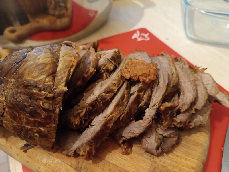 Il doit être consommé chaud, avec sa petite sauce, mais je vous assure que tranché finement, et servi froid, avec une légère giclée de bon vinaigre balsamique… Il fera honneur à chaque table!