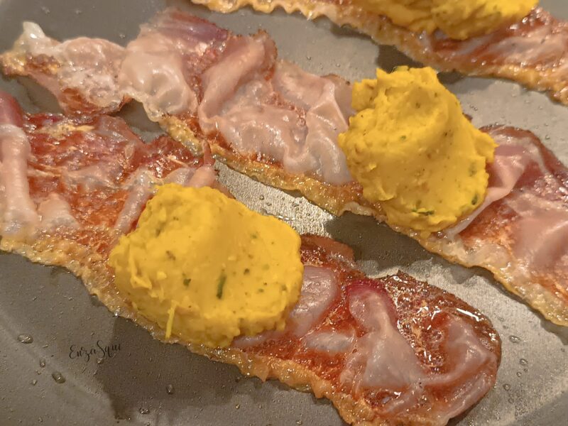 Faites rissoler les tranches de speck dans une poêle avec très peu d’huile…