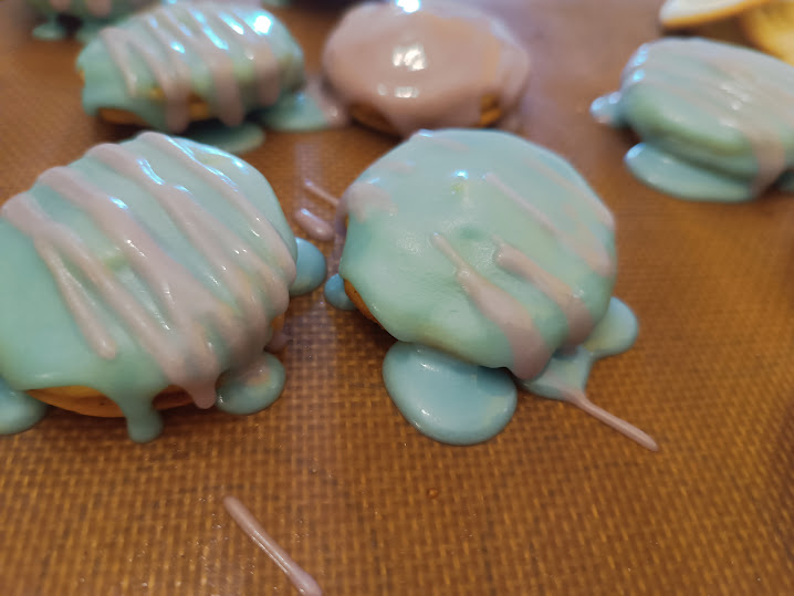 • Glacez vos biscuits, d’abord avec la nuance de base puis décorez avec une autre tonalité.