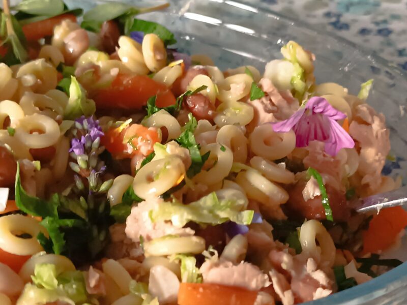 Entre courgettes, haricots de l’année dernière, petites carottes, ciboules et pourpier… Je savourais déjà ma salade de pâtes… C’était peut-être aussi la faim!… Qui sait ?