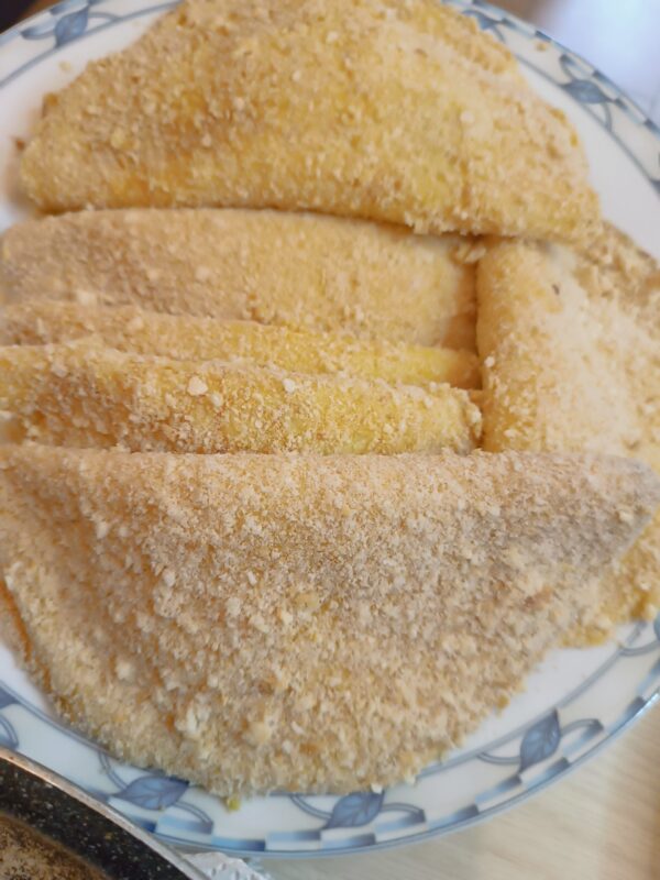 Ensuite, passez-les dans la chapelure…Si vous aimez une panure plus épaisse, répétez 2 fois le procédé, si vous les aimez plus croquantes, ajoutez une cuillère de farine de maïs à la chapelure