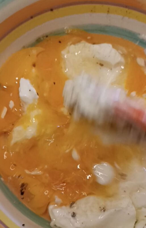 Ajoutez les œufs avec la ricotta et mélangez bien, si vous le souhaitez, ajoutez une généreuse pincée de poivre noir