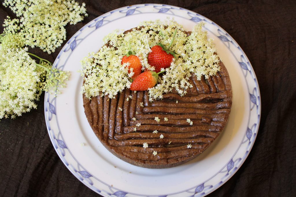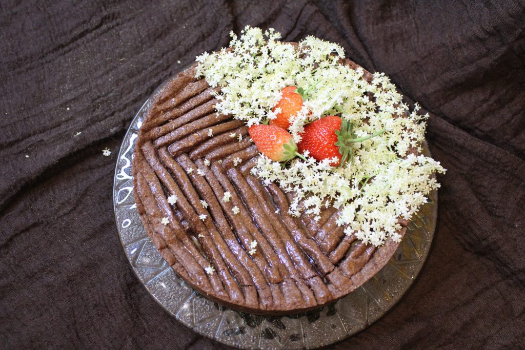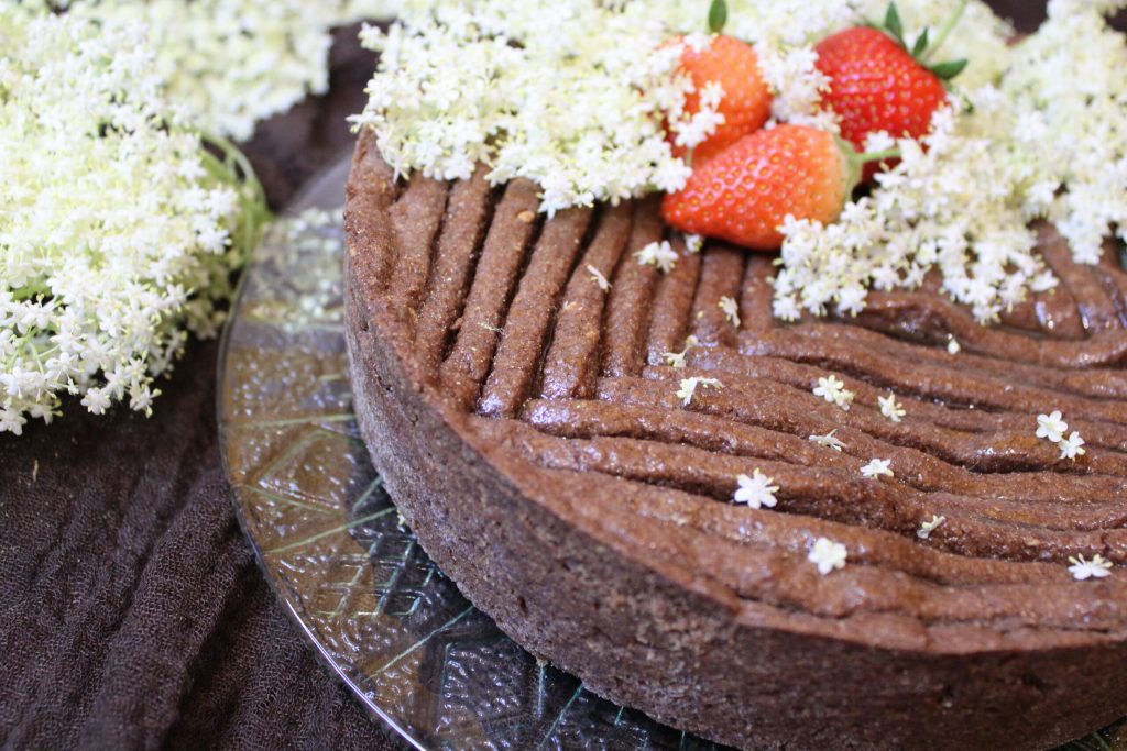 Un triomphe de parfums qui pénètrent dans la maison, créant une atmosphère riche en harmonie. Cette tarte a un incroyable bouquet fleuri. Entre le parfum de cacao, le sureau et les griottes, on s’y perd !