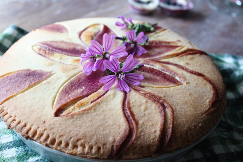 • J’ai décoré la surface avec le sirop de mûres puis je l’ai mise au four à 180 degrés jusqu’à cuisson. Il faudra environ 40 minutes, sur le plan moyen-bas pour bien cuire la base.