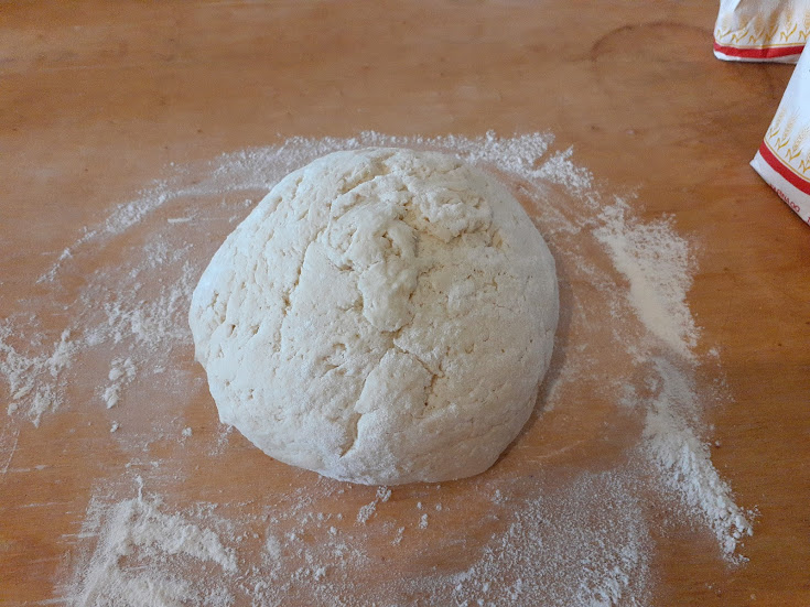 Ajoutez la farine et le sel, le saindoux et le lait tiède avec la levure dissoute dedans. Pétrissez bien tous les ingrédients jusqu’à obtenir une pâte compacte. Laissez lever pendant deux heures