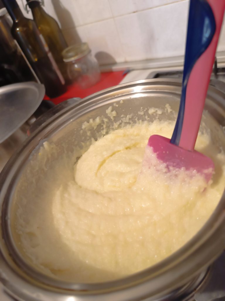 • Laissez épaissir sur le feu jusqu’à obtenir un mélange moelleux mais sec, qui tend à se détacher des parois de la casserole.