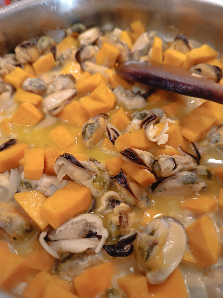 Ce plat unit saveurs et couleurs de manière harmonieuse, créant une expérience gustative unique. Le potiron avec son goût doux et crémeux se marie parfaitement avec les moules, qui apportent une touche marine et salée à la préparation. L’arôme qui se diffuse pendant la cuisson est tout simplement invitant.
