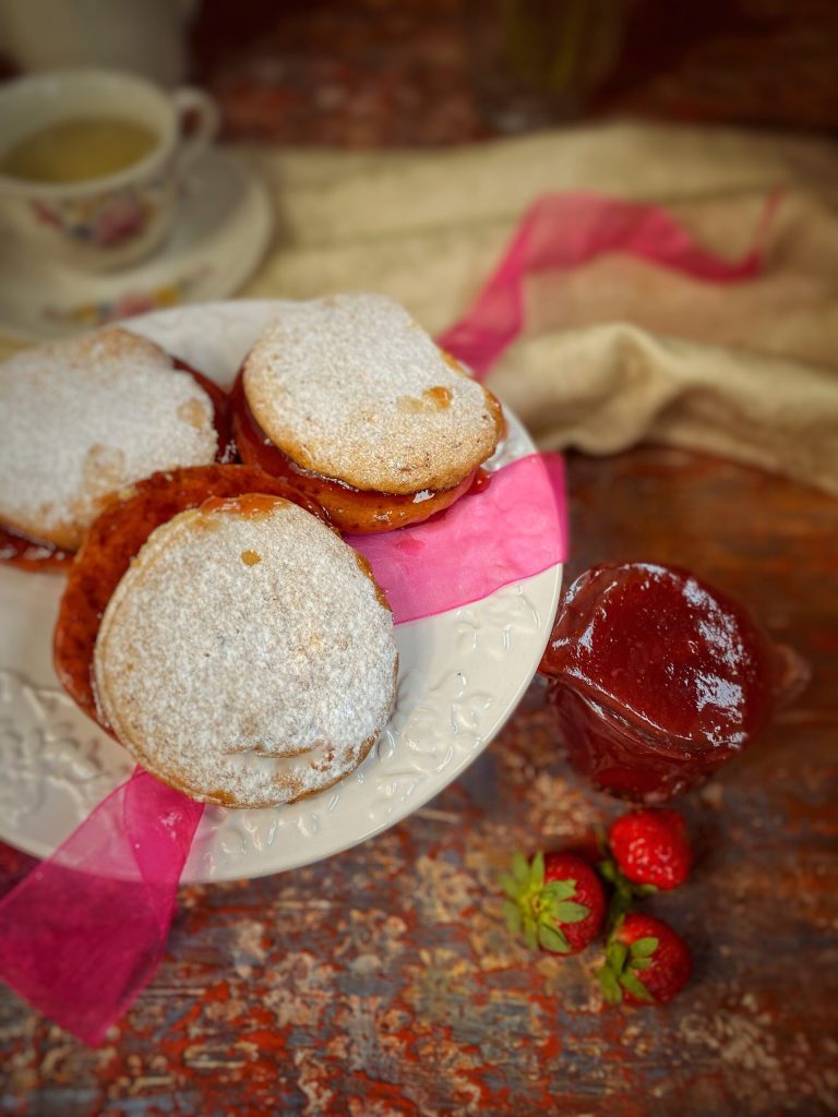 Ingrédients pour alfajores péruviens avec manjar de fraise: