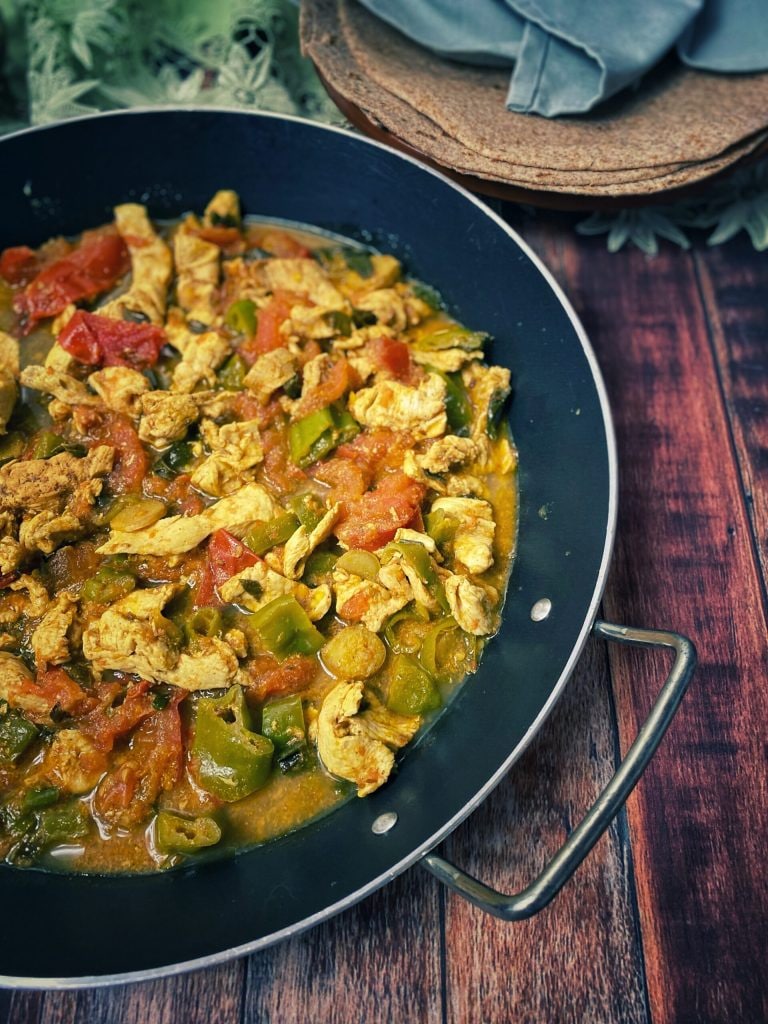 Le nom provient du plat en métal dans lequel le curry est cuit, plutôt que d’un ingrédient spécifique ou d’une technique de cuisson.