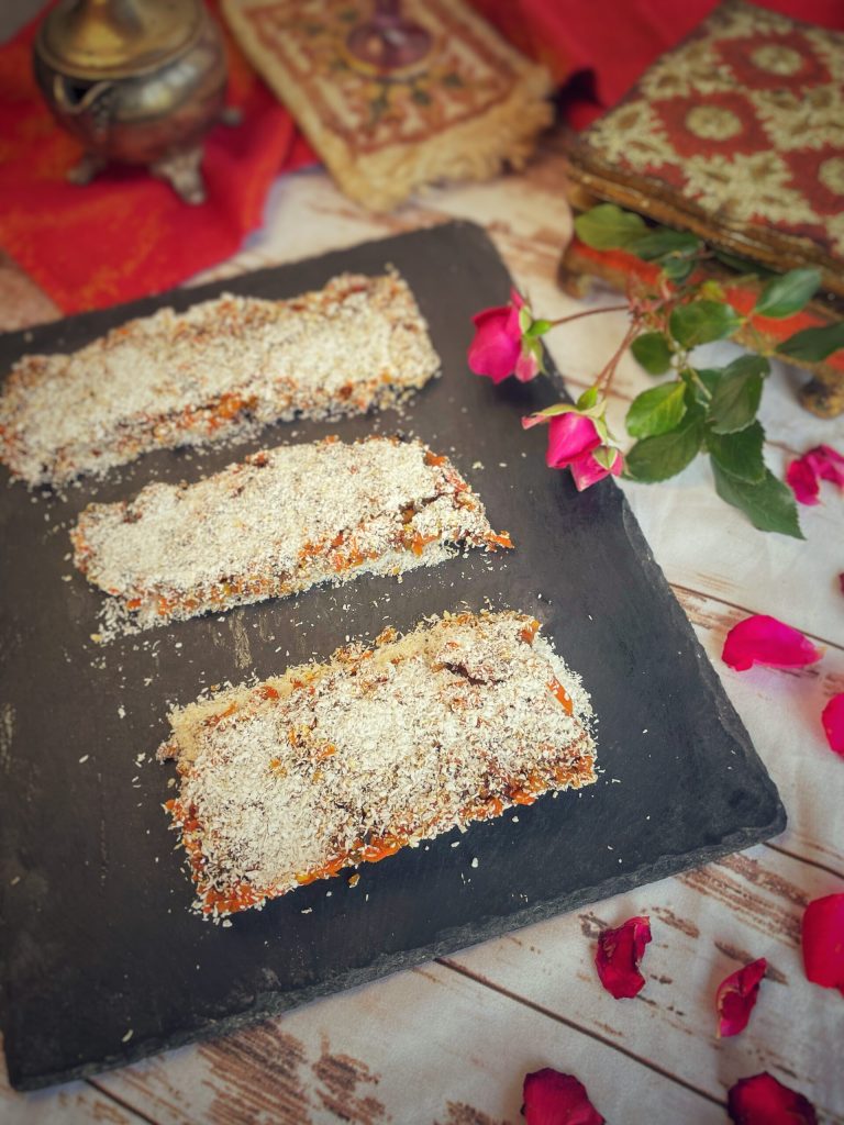 Le Cezerye est une douceur turque originaire de la région de Mersin, réalisée avec des carottes, du sucre, des fruits secs et de la noix de coco.