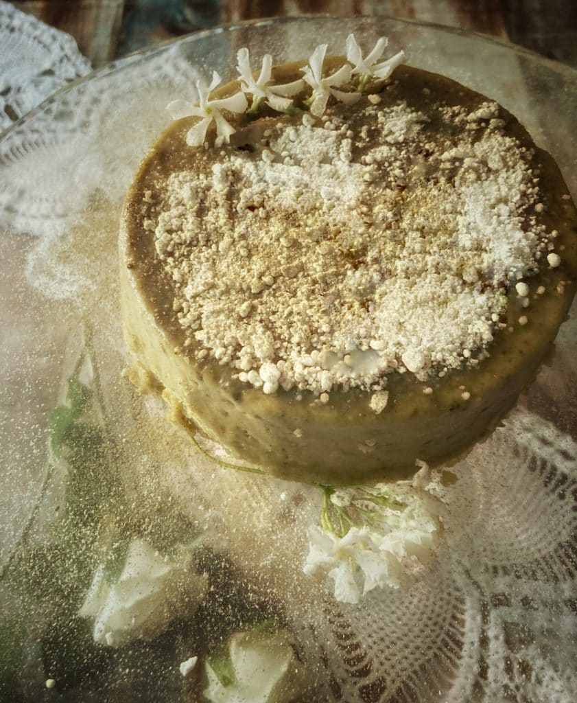 La texture du cheesecake matcha coton est celle d’un gâteau léger, semblable à un soufflé, et moelleux, avec une saveur terreuse de thé vert qui équilibre celle du fromage crémeux.