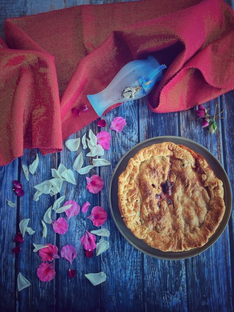 Enfourne la tarte dans le four déjà chaud pendant environ 45-50 minutes ou jusqu’à ce que la croûte soit dorée et que la garniture commence à bouillir visiblement à travers les entailles.