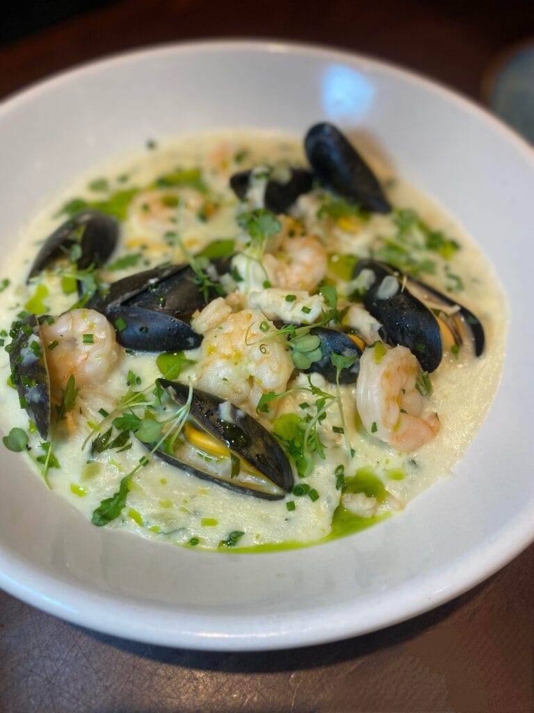 D’autres soupes courantes incluent le chowder de fruits de mer, qui consiste souvent en poisson, palourdes et autres types de mollusques.
