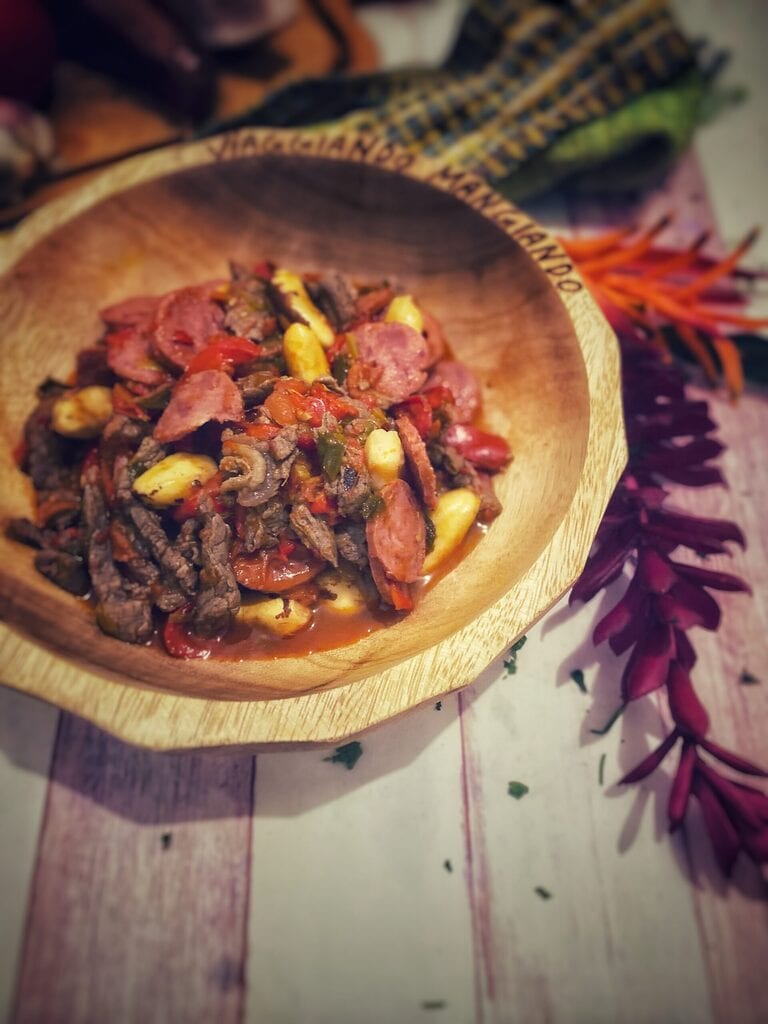 Les tropeiros utilisaient divers ingrédients comme les restes de viande, donnant ainsi le nom de « entrevero« , qui signifie confusion, désordre.