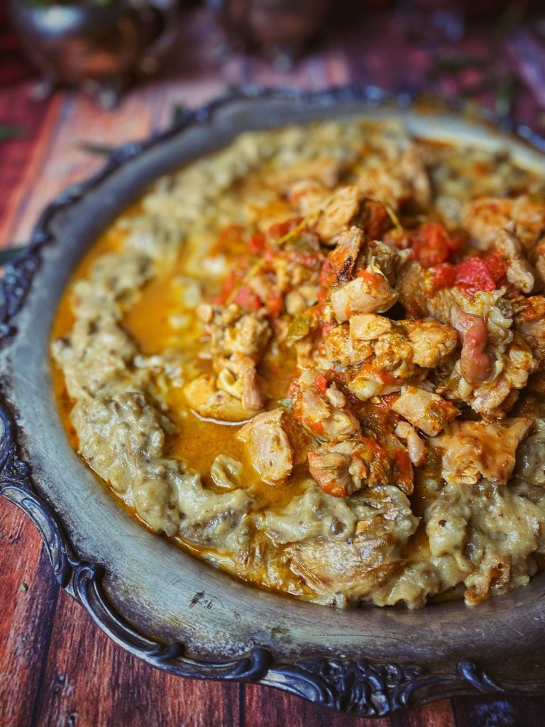 Les aubergines sont grillées jusqu’à ce que la peau brûle, leur donnant une saveur fumée, puis elles sont réduites en purée et épaissies avec une sauce béchamel pour former la sauce beğendi.
