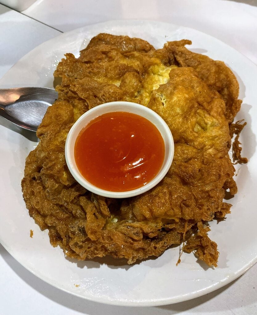 Également défini comme omelette thaïlandaise, elle se différencie de celle française car elle est cuite dans beaucoup d’huile: le mélange d’œufs est versé d’une hauteur d’environ un mètre dans de l’huile bouillante.