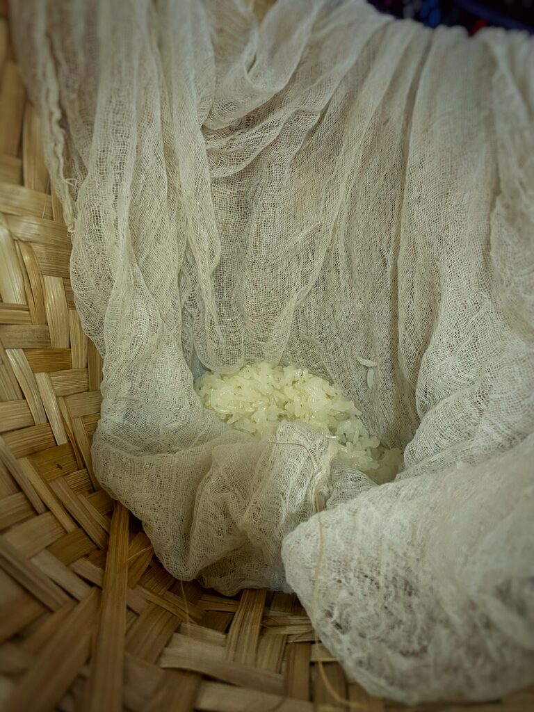 • Tout d’abord, tremper le riz gluant dans l’eau pendant trois heures après l’avoir rincé plusieurs fois, puis cuire à la vapeur dans un panier en bambou pendant environ 20 minutes.