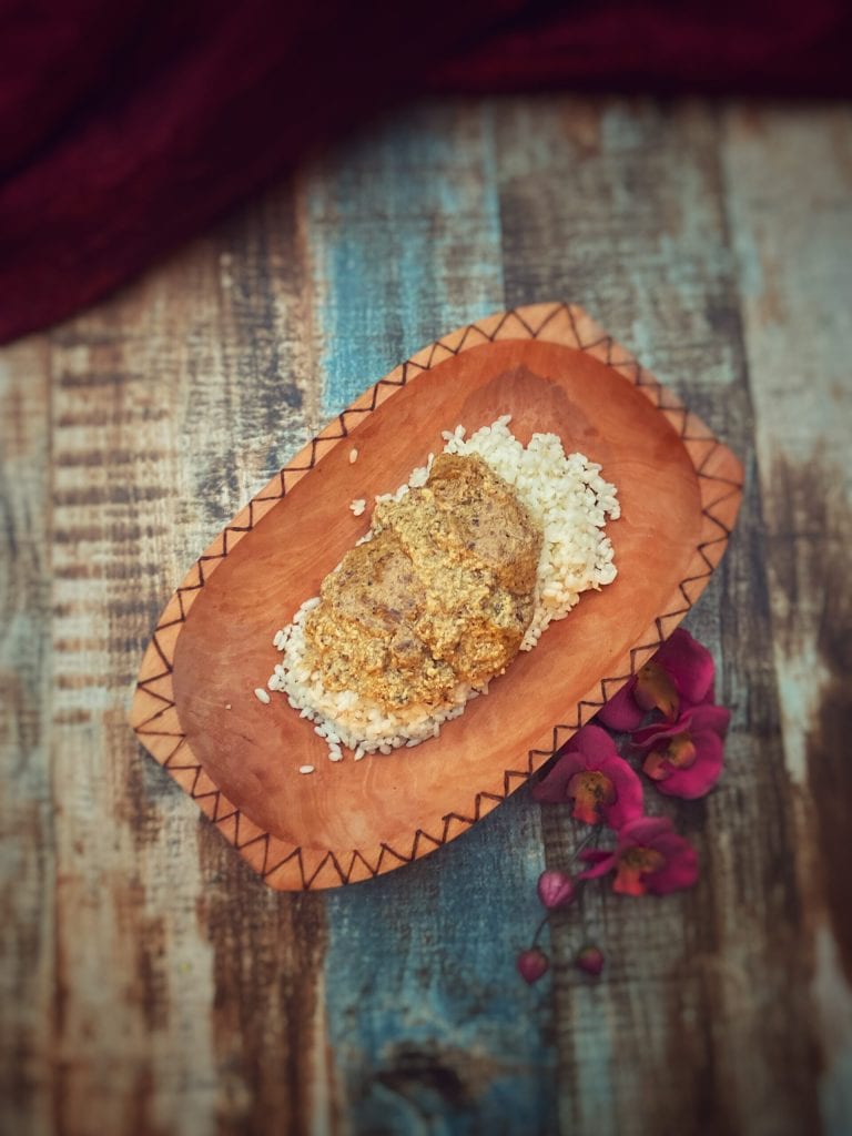 À base de crème de coco, œufs et sucre (j’ai utilisé celui de coco) elle est cuite seule ou à l’intérieur d’une courge kabocha évidée, souvent colorée avec des feuilles de pandan.