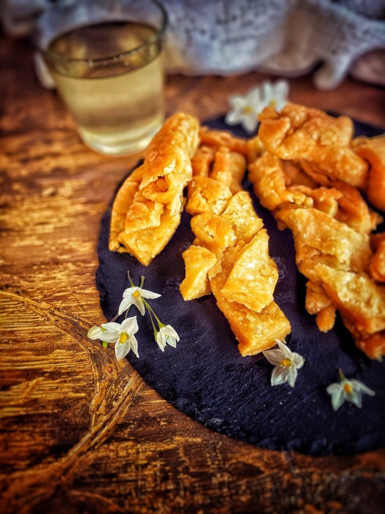 Ils sont préparés en faisant frire des bandes de pâte tressée faites avec une base d’œufs, de farine et de beurre, puis en trempant la pâte frite chaude dans le sirop glacé.