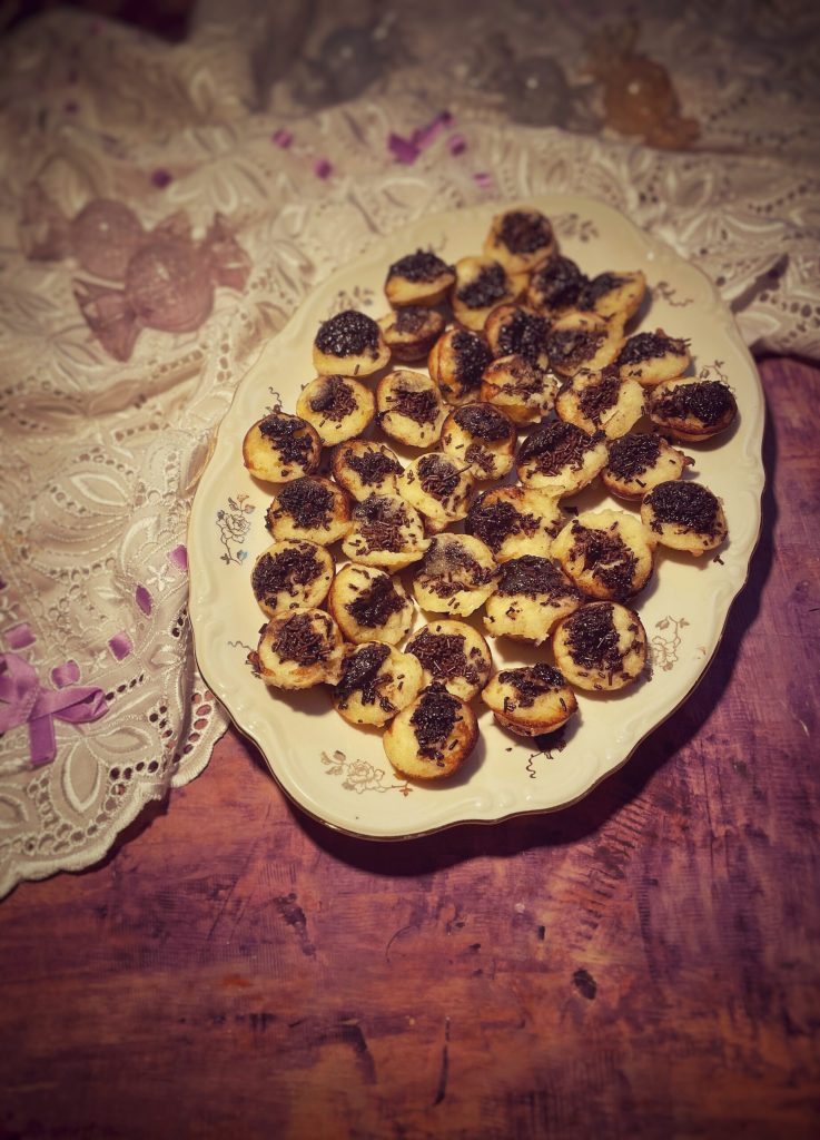 Traduisible littéralement par « gâteau pincement », ce dessert doit son nom à sa petite taille et au geste nécessaire pour le déguster : on le soulève du moule ou du sachet d’un délicat mouvement des doigts, presque comme pour le pincer.