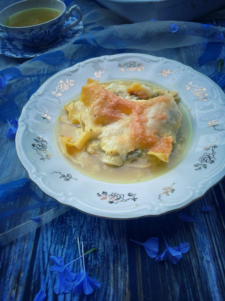 Ce type de lasagne se distingue par sa délicatesse et par l’utilisation du bouillon de viande comme élément central.