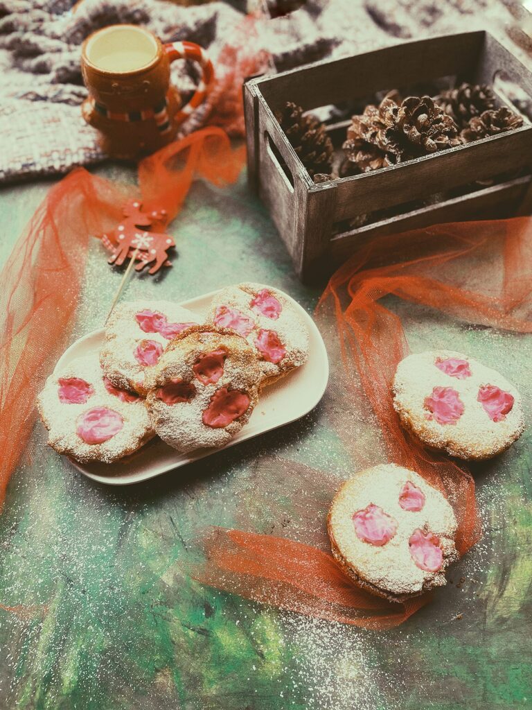 Linzer Augen : généralement garnis de confiture de groseilles rouges ou abricot.