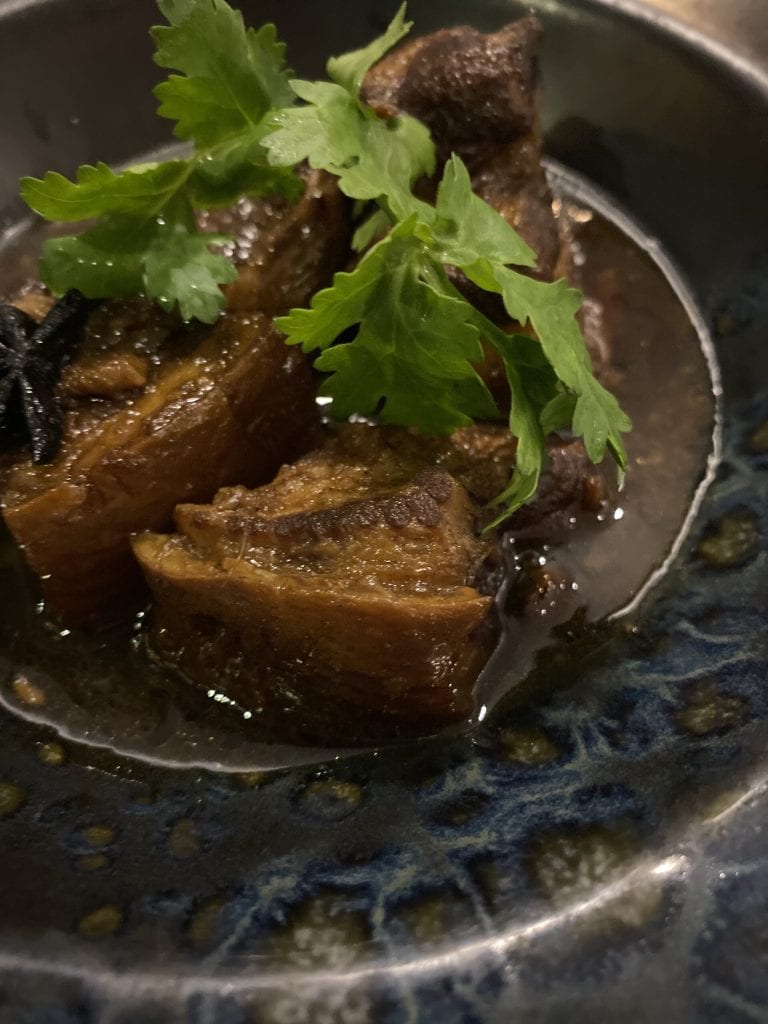 Goûté au restaurant Rakhang Thai Bistro & Bar , le soir de mon arrivée à Ao Nang le 4 octobre 2024 : poitrine de porc braisée avec des épices chinoises, plat typique du sud de la Thaïlande et surtout de Phuket.