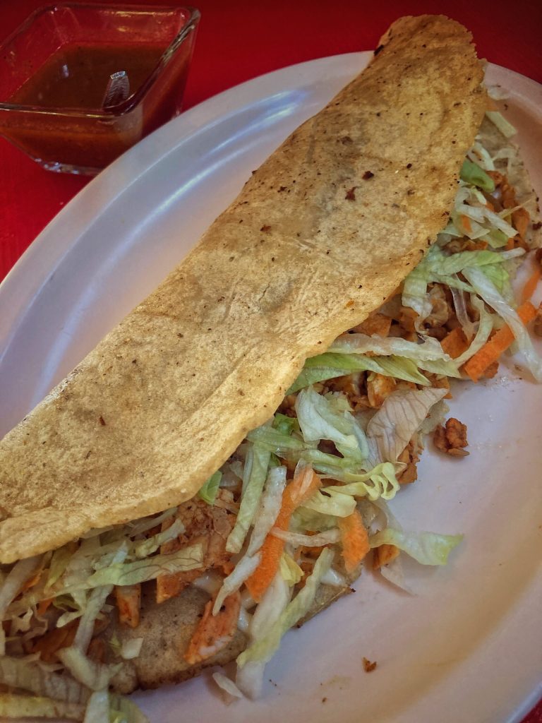 Les pochas sont des tortillas de maïs auxquelles est ajoutée la viande des tacos de bœuf.