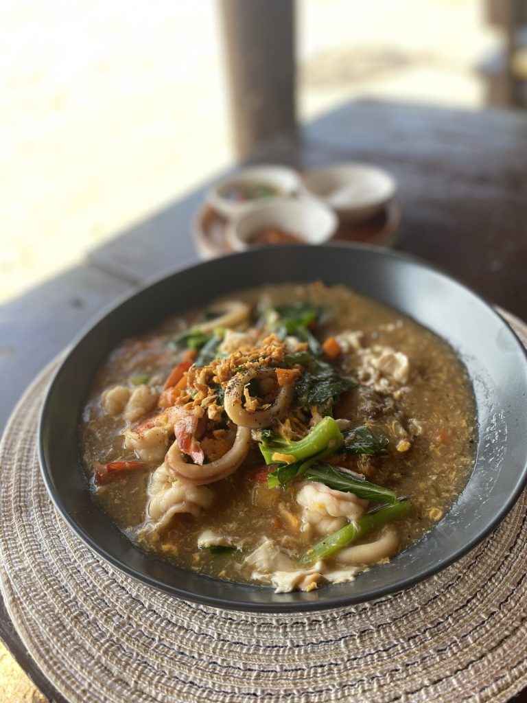 C’est celui avec des crevettes goûté au restaurant – bar sur la plage de Koh Lanta « Boogie bay » lors de notre voyage en novembre 2024.